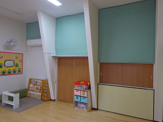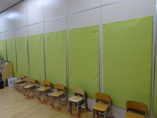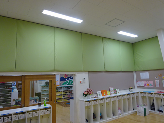 ■幼稚園などの施設でも室内に取り付けることで園児の声の低減が可能です。外に漏れる音を軽減できるだけでなく、室内で先生が話しやすい空間にもできます。