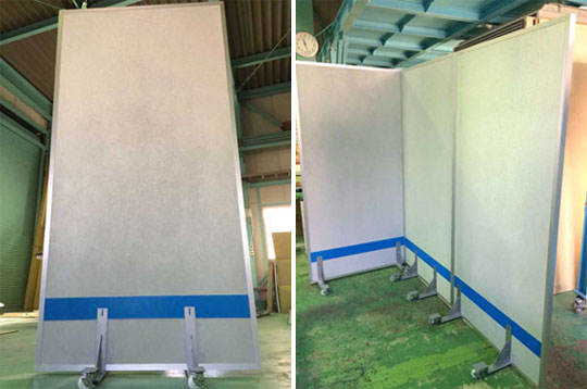 「一人静シリーズ」をカスタマイズした、工具なしで設置が簡単にできる、「キャスター付き吸音パーテーション」です。移動・設置・解体も一人で楽々可能。未使用時も作業の邪魔をしません。