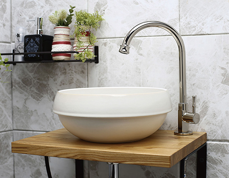 ベッセル型(置き型)手洗いボウル用に設計されたスワン型の単水栓。