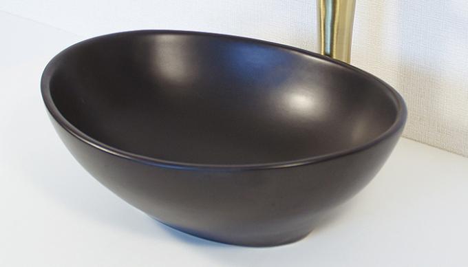 流行のモノトーンコーディネートに最適な、つや消し黒の洗面ボウル。