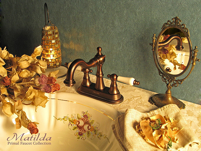 Neo水栓ブランド【Matilda/マチルダ】はアンティークな水栓で、ブロンズ色を組み入れるなどゴージャスな感じが漂う蛇口です。パッキンレス構造で、心臓部には日本製のセラミックバルブを搭載しておりますので、信頼性・安定性に非常に優れております。