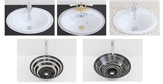 埋込タイプ、卓上タイプ、アートセラミックタイプ、他たくさんの洗面ボウルを準備させて頂いております。
