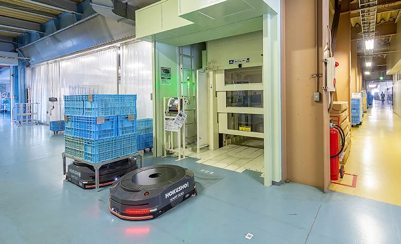 ●生産施設での庫内搬送や出庫搬送…昼夜を問わない搬送をサポート