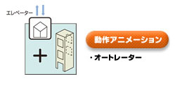■搬送物を自動的に出し入れしてロスタイムを省くため、荷物用エレベーターに比べていっそうの高能率を発揮します。近年高層化した配送センターや工場、大型ショピングセンターなどにおいて要求される多品種変量搬送に的確に対応します。