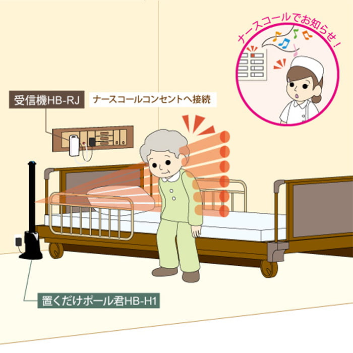 A. 置くだけポール君は「非接触型の赤外線離床センサー」なので対象者様に直接触れないため衛生的です。