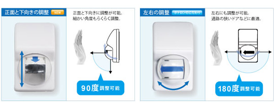 ■正面・下向き・左右の3パターンにビームスイッチの角度調整!従来固定だったビームスイッチの角度が正面・下向きに加えて、左右にも調整ができます。