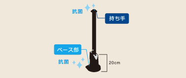 持ち手とベース部が抗菌仕様になっているため、衛生面でも安心です。