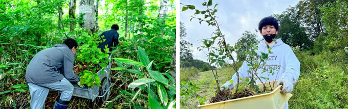 2013年に、長野県下高井郡木島平村と森林(もり)の里親契約を締結し、同村カヤの平高原牧場内に「地球樹の森」を設立しました。未利用牧草地に、ブナの植樹を行い、元のブナの原生林に還す活動です。