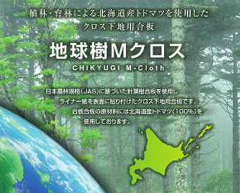 植林・育林された北海道産針葉樹を使用した合板の表面にライナー紙を張り付けたクロス下地用合板です。