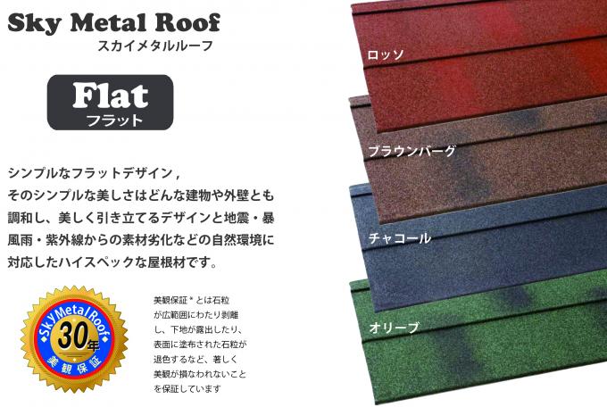 約50年ほど前にニュージーランドで生まれたこのストーンチップジャンルの屋根材は、世界各国でその高い防災性・耐久性・軽量性・耐候性を認められ、多くのお客様に選ばれております。
