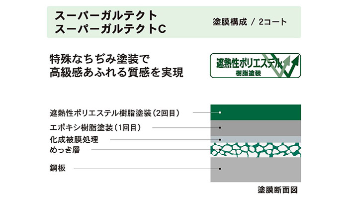 ■遮熱性を兼ね備えた格調高い表面意匠『遮熱性ポリエステル樹脂塗装』