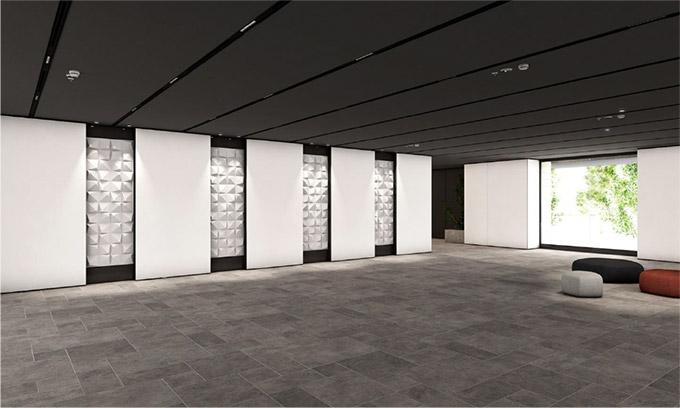 「Xium」は、高級金属のチタンとアルミの2種類の素材を用い、200mm 角の正方形モジュールとしてパネルの取り付け方向を変えることにより、整然と揃った表情やランダムな変化のある表情など、作り手(設計者、施主)のイマジネーションによって、洋にも和にもなり得る個性的な壁面を創ることができる材料です。