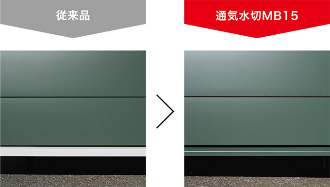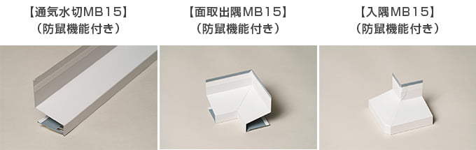 新部材は、新しく防鼠機能を備え、さらに「面取出隅MB15」、「入隅MB15」というコーナー部材を用意することで、より施工性を向上させています。