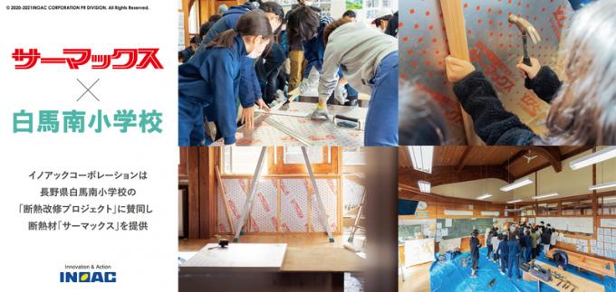 日本で初めてウレタンフォームの生産を始めた高分子素材のリーディングカンパニーである株式会社 イノアックコーポレーションは、自社で製造するPIR(ポリイソシアヌレートフォーム)の断熱材「サーマックス」を、長野県の白馬村にある⽩⾺村⽴⽩⾺南⼩学校へ提供しました。