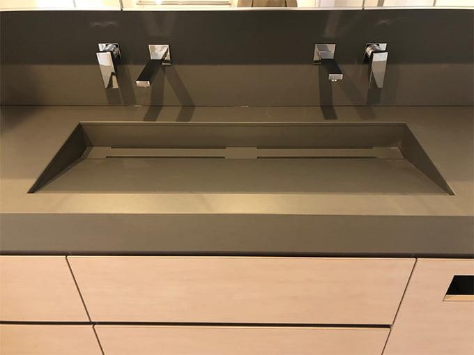 美しさとデザイン性を生かしながら傷に強く、天然石を超える質感を持ち、無孔質で汚れや雑菌が一切、染み込まない素材なので衛生的で、かつ美しさがいつまでも変わることがありません。