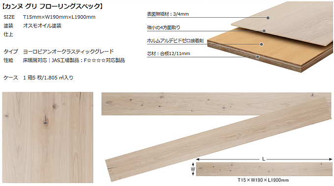 ヨーロピアンオークに塗装した白すぎない色合いのカンヌグリは、近年人気のジャパンディスタイルにもよくフィットします。