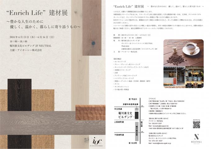 京都 “Enrich Life” 建材展 at 堀川新文化ビルヂング 開催のお知らせ