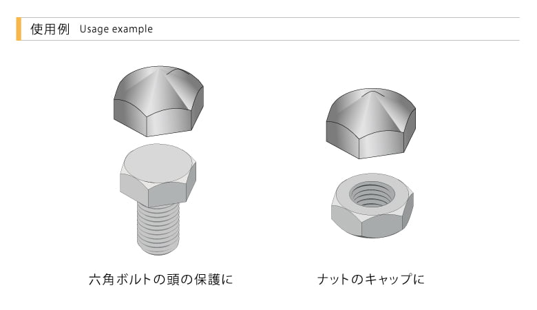 ■「座金」に対応した各種キャップを追加。六角ボルト頭・六角穴付ボルト頭・ナットなど、座金を含めてカバーできます。
