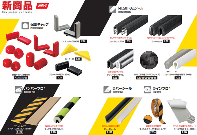 Lアングルやコーナー用「保護キャップ」、すべり止めの突起付「ラインテープ」など、新製品の安全対策品も多数ご紹介しています。