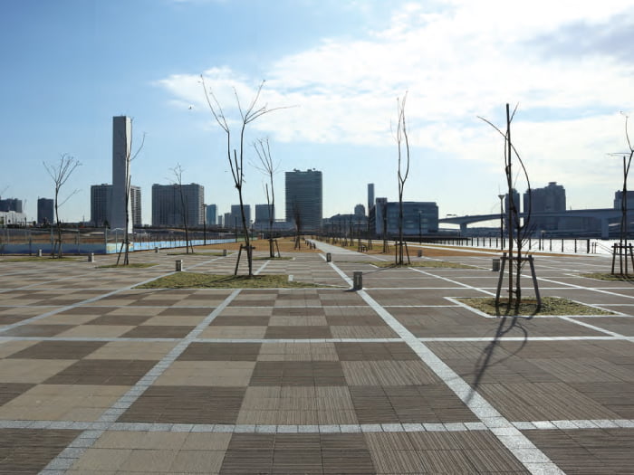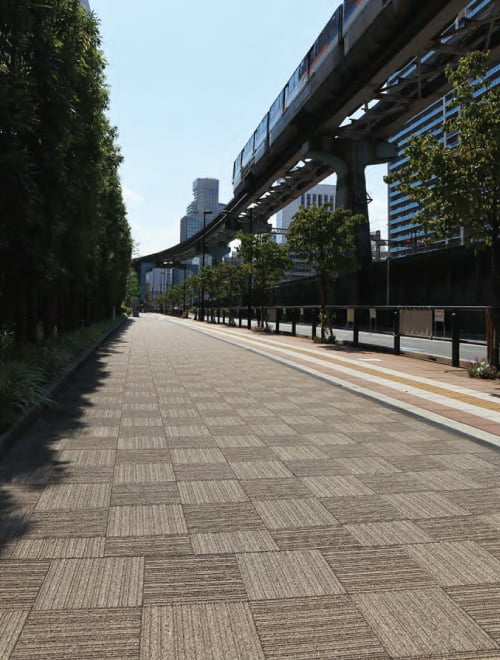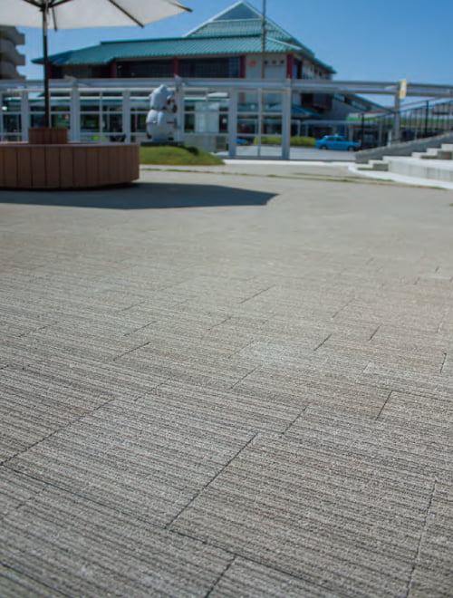 織物の繊維を連想させるスリットをあしらうことで、舗装面に柔らかい印象を与えます