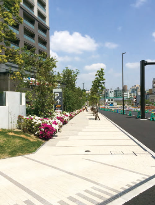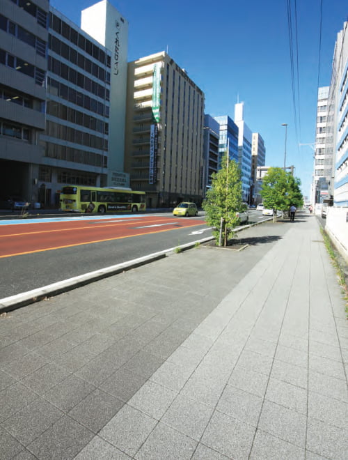 雨が降っても水溜りができないので、歩行中の跳ね返り、自転車のスリップも低減。