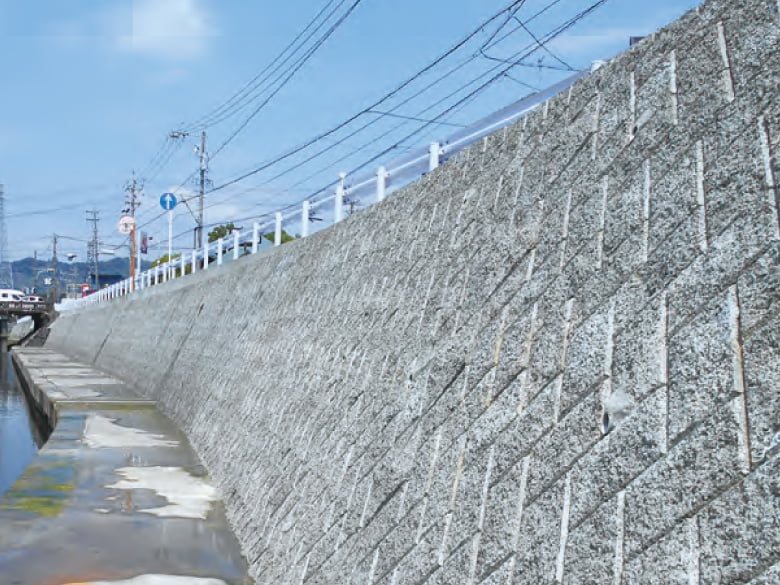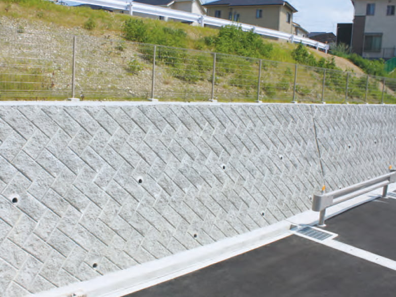 即時形成コンクリートを2つに割ることで、自然石に近い風合いを作り出す積みブロックです。