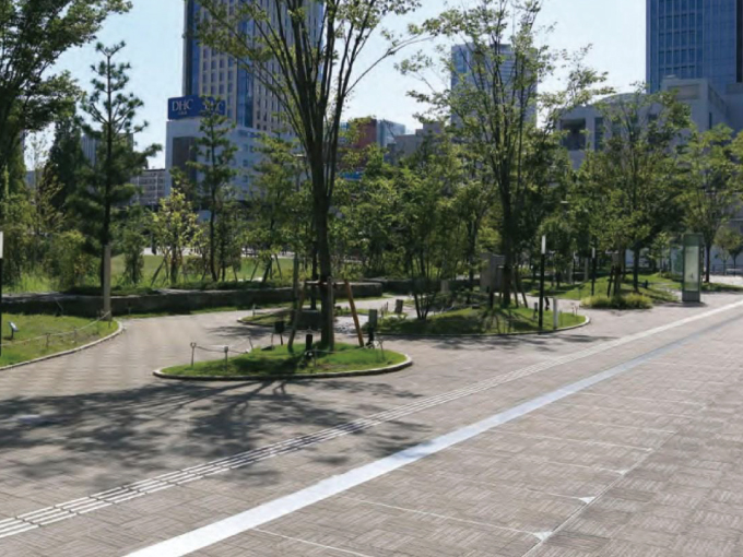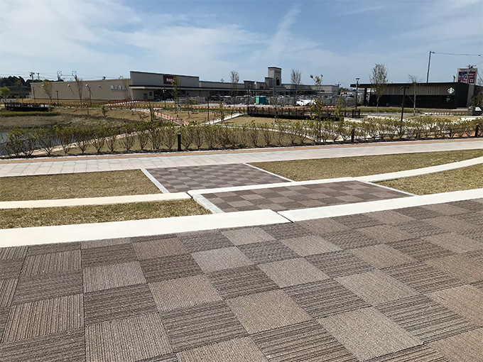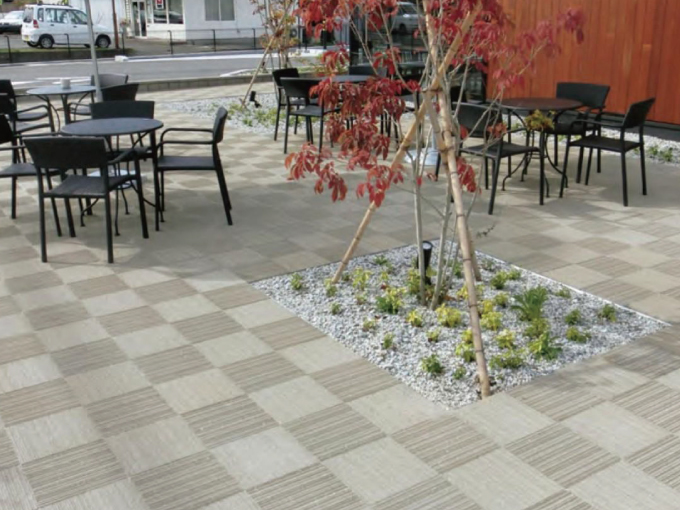 織物の繊維を連想させるスリットをあしらうことで、舗装面に柔らかい印象を与えます