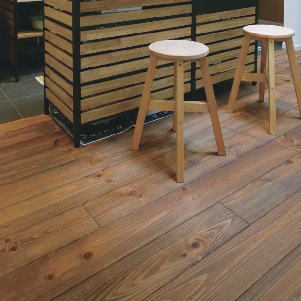 針葉樹としては非常に硬く、耐久性に優れており、豪快な節や目地の隙が本物の存在感を主張します。