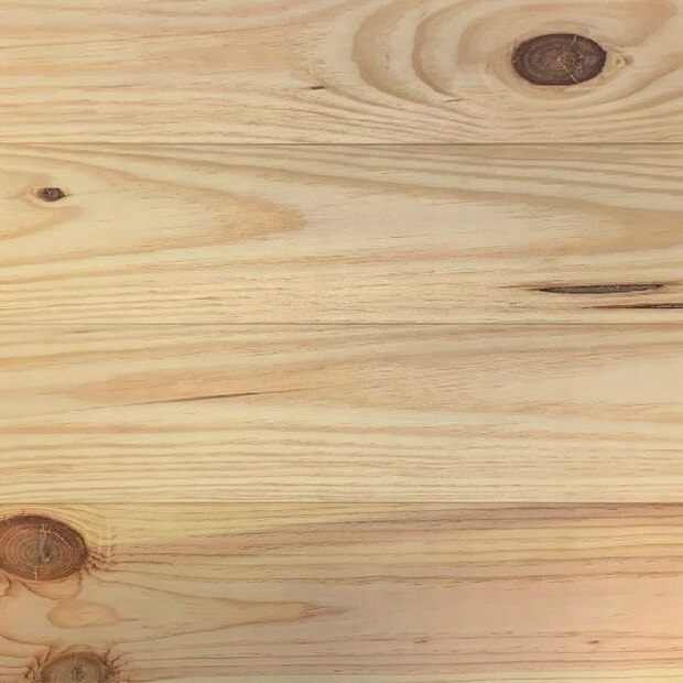 針葉樹としては非常に硬く、耐久性に優れており、豪快な節や目地の隙が本物の存在感を主張します。