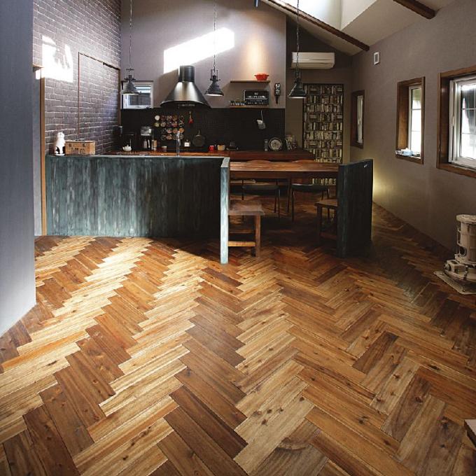 木目の美しいアカシアフロアです。上質な素材感で重厚な雰囲気を醸し出すアカシア。色のばらつきが特徴の一つとして好まれています。集成無垢にすることにより、従来のアカシアより安定性がアップします。