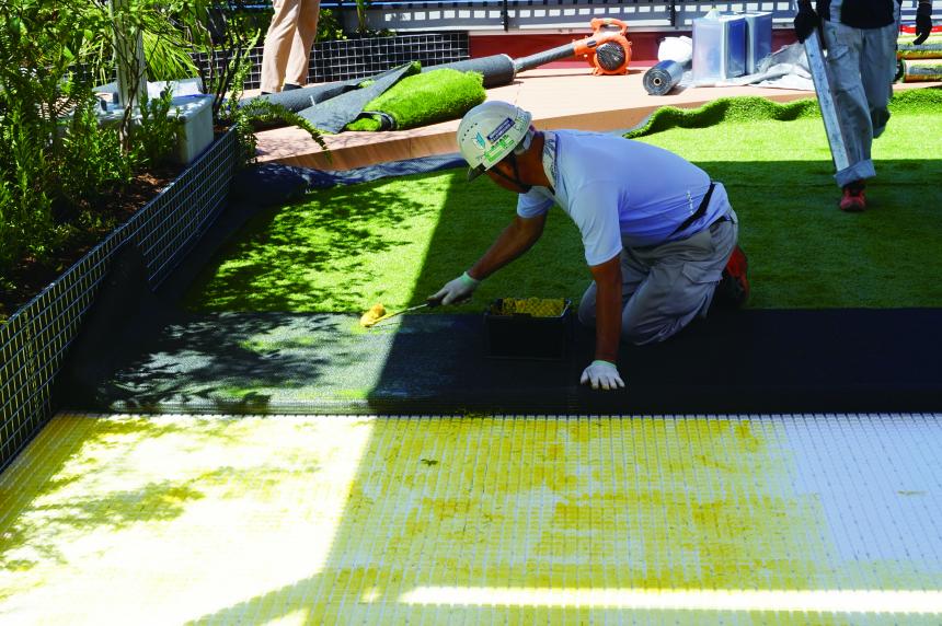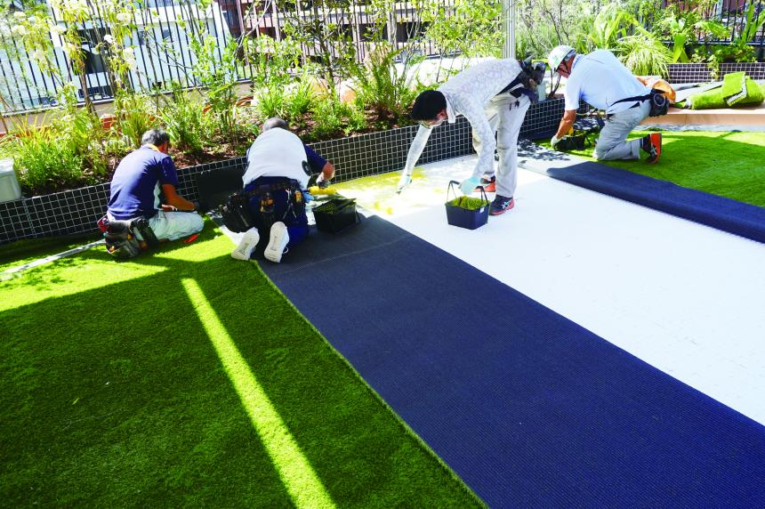 商業施設等の屋上向け人工芝+アンダーマット|株式会社ウエノシステック