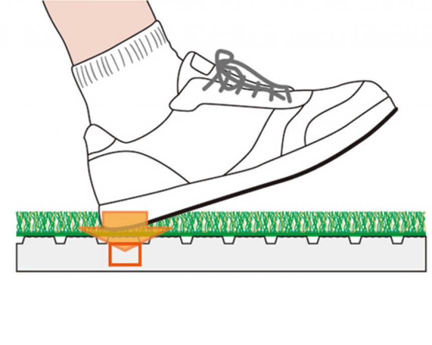 コンクリート床に人工芝を張る際、アンダーマットを敷くことで、クッション性が上がります。