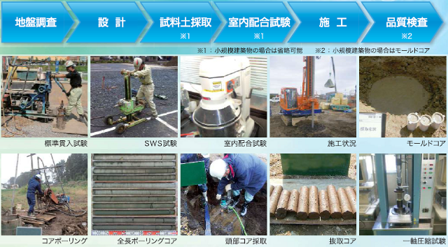 すべての建築物、擁壁および工作物と、多様な用途に適応可能なクロスウィングコラム工法。工期短縮とコストダウンも期待できます。ジオテック株式会社では、地盤調査、補強工事なども承っておりますのでお気軽にお問い合わせください。