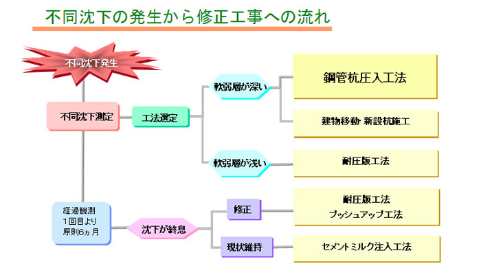 ■基礎下全体修正(再沈下防止目的)にするか、部分修正にするか。