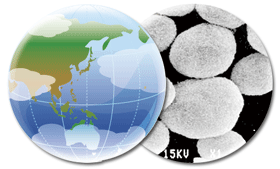 当社は1966年に、球状に集まるゾノトライト結晶(ゾノトライト:けい酸カルシウム水和物の一種)を独自の製法によって製造することに世界で初めて成功しました。球状に集まるゾノトライト結晶は、軽量な成形体を作る基本素材となります。