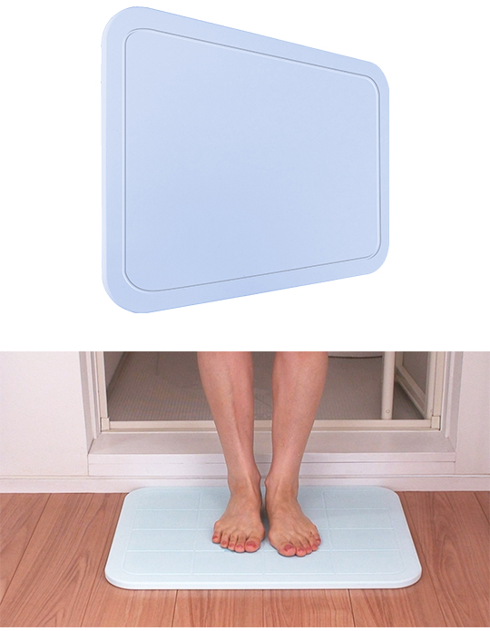 バスマット内部に吸い込まれた水は、その後バスマット内部で分散し、バスマットの表面から水蒸気となって空気中に放出されるため、すぐに足裏はサラッといたします。