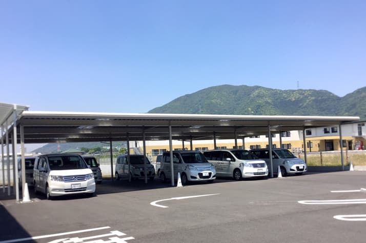 鉄骨構造だから 4 台用・5 台用の幅広い連棟タイプに対応できます。