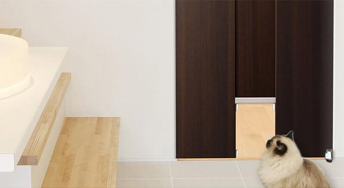 フルハイトドアの洗練されたデザインにペットドアの組み合わせにより、住宅の雰囲気を崩しません。