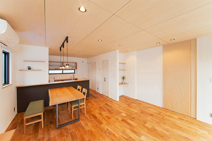 規格外の大きさが必要な空間にこそ活きる大型ドア。その名の通りモンスターサイズの引き戸が空間をスマートに仕切る。大きいことの価値。それは住む人の心に力強さと安心感を生むこと。