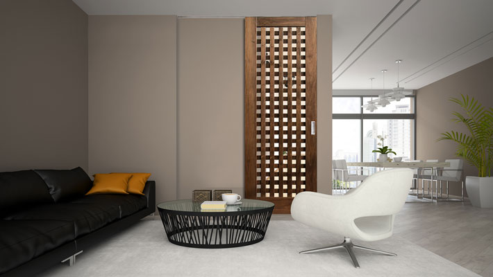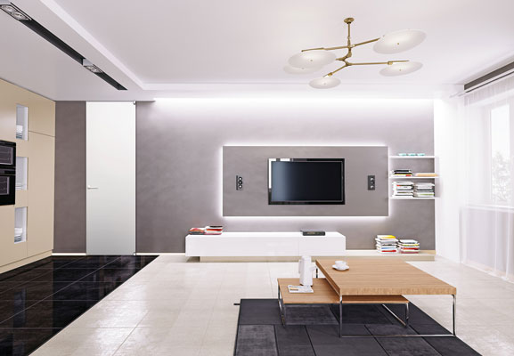 フルハイトドアの最大の特長は、天井まで届くドアの大きさと上枠がない独特の納まりが生み出す天井のつながりです。