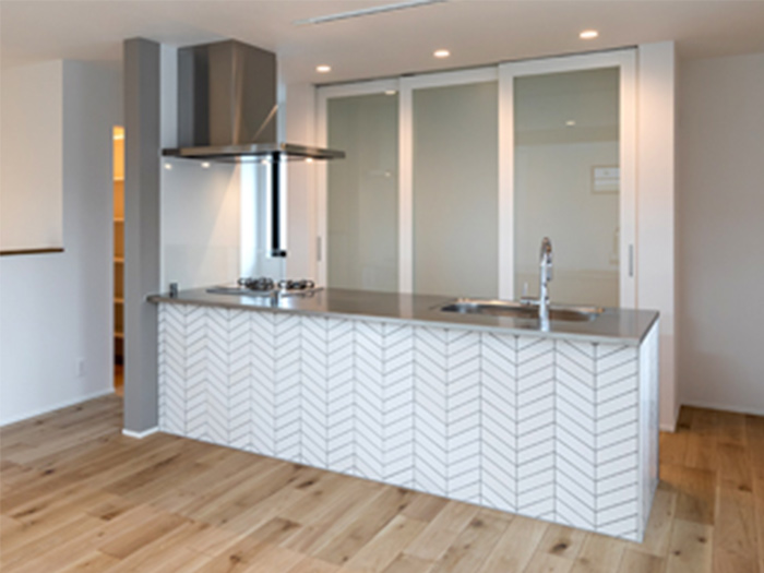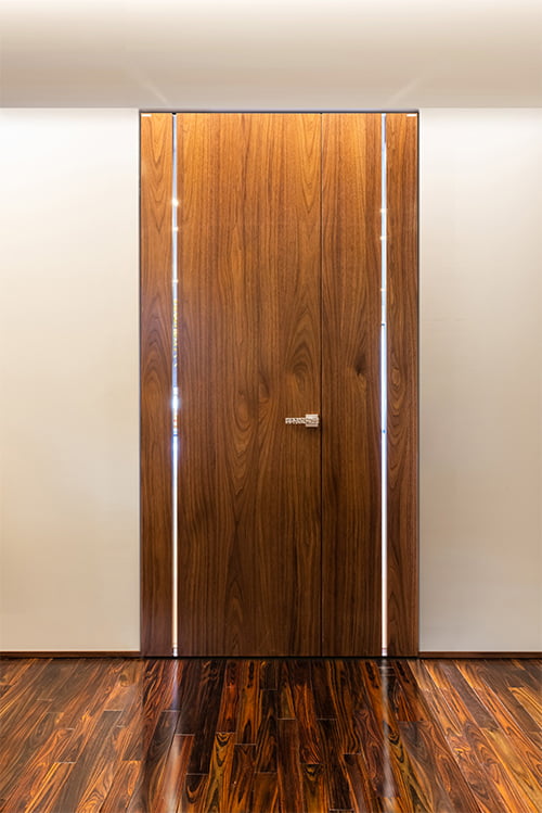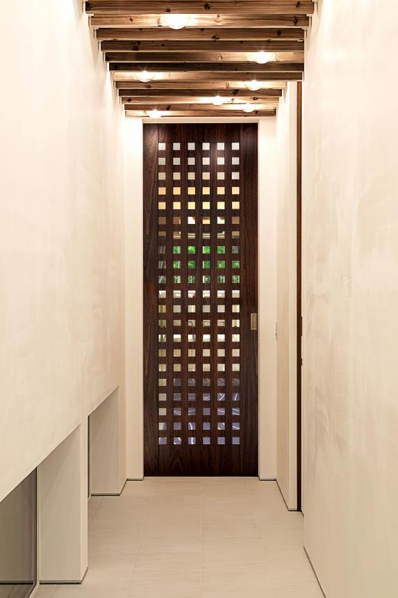 フルハイトドアの最大の特長は、天井まで届くドアの大きさと上枠がない独特の納まりが生み出す天井のつながりです。