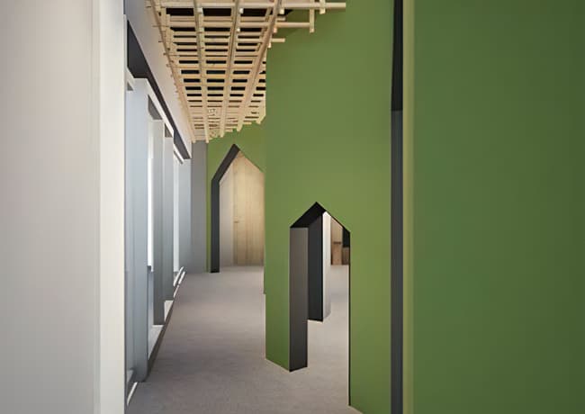 フルハイトドアの最大の特長は、天井まで届くドアの大きさと上枠がない独特の納まりが生み出す天井のつながりです。