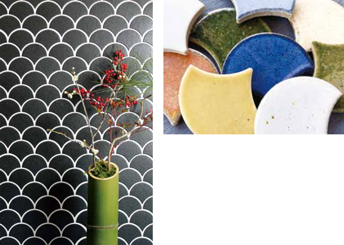 波の輪のような形状と古窯変カラーで、和風でも洋風でもマッチするので、住宅の内装壁にオススメです。