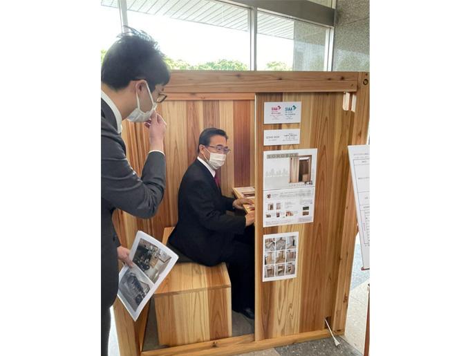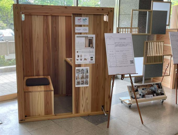 2021年の4月には、愛知県県産木材利用創出事業「感染症拡大防止対策」対応の製品として、愛知県庁西庁舎にて展示されました。