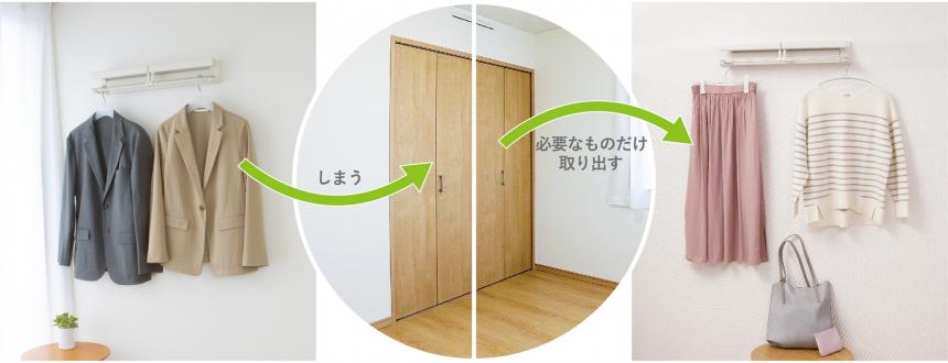 帰宅後にアウターを仕舞う前に、湿気や臭い抜きのための一時掛けスペースにも使えます。