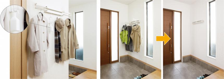 帰宅時にアウターの臭い・菌・ウイルス・花粉等は部屋に持ち込まず玄関でストップ。