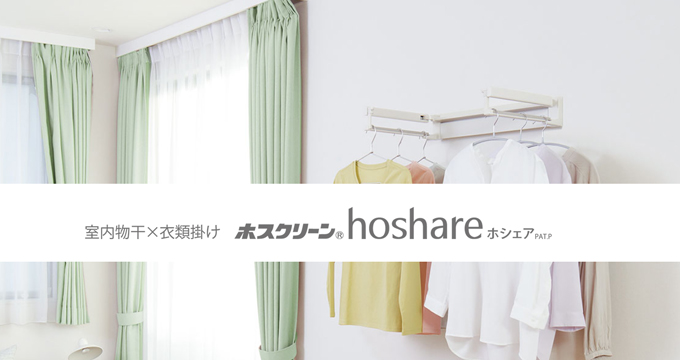 「干す、しまう」「掛ける」 をこれひとつで!室内物干×衣類掛け「ホシェア」