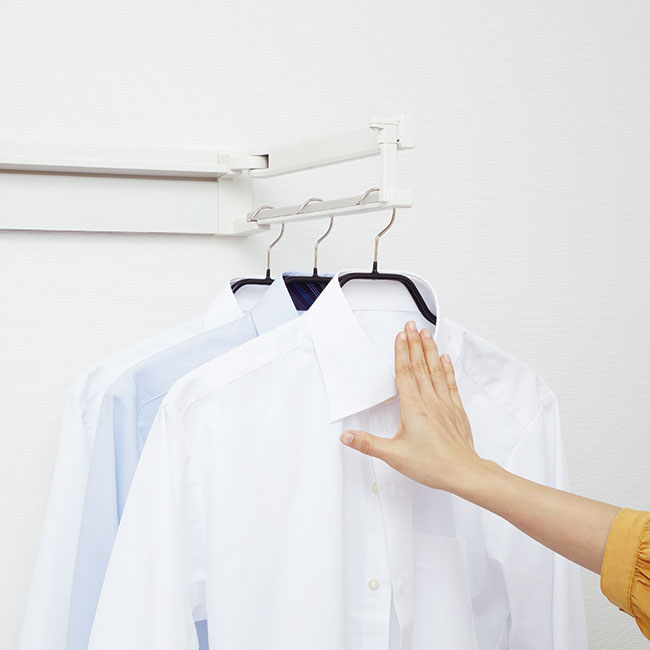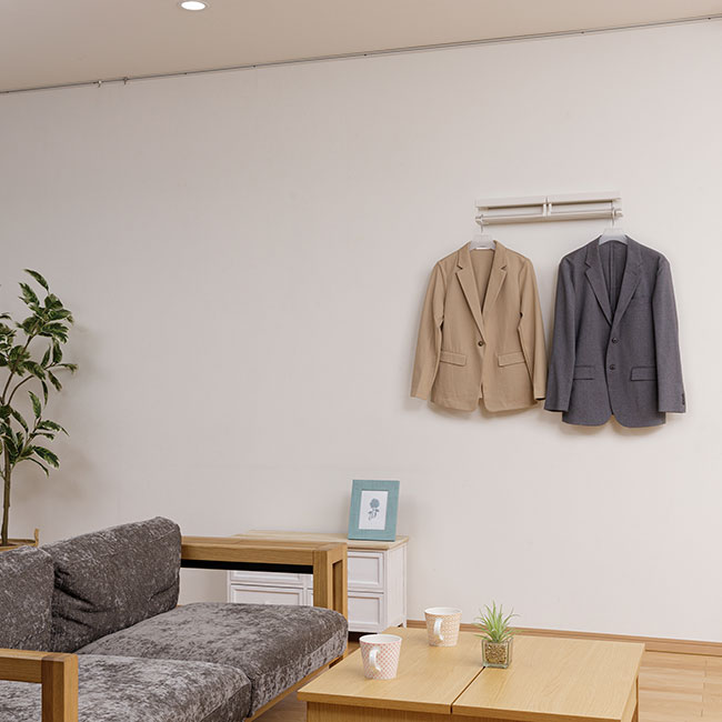 帰宅後にアウターを仕舞う前に、湿気や臭い抜きのための一時掛けスペースにも使えます。