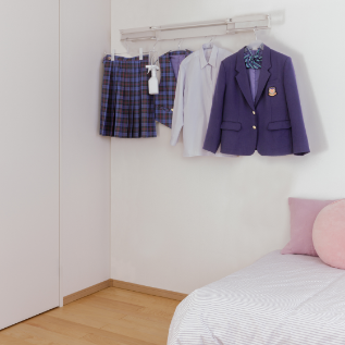 hoshareはひとり分にちょうどいいサイズ感なので、洗濯物はそれぞれで干す家事シェア家族にぴったり。あるいはホシェアをシャツ干し用として他の物干金物や衣類乾燥機と役割分担させる…等、生活スタイルにあわせた使い方ができます。