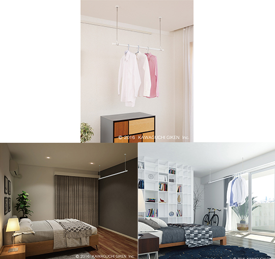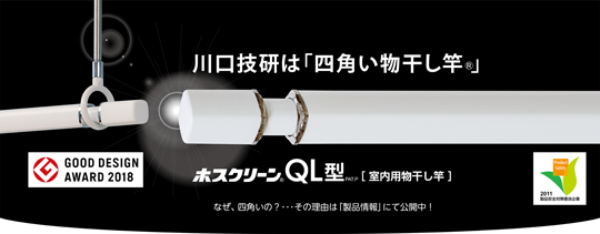 川口技研がオススメする四角いカタチ【室内用物干し竿 ホスクリーンQL型】